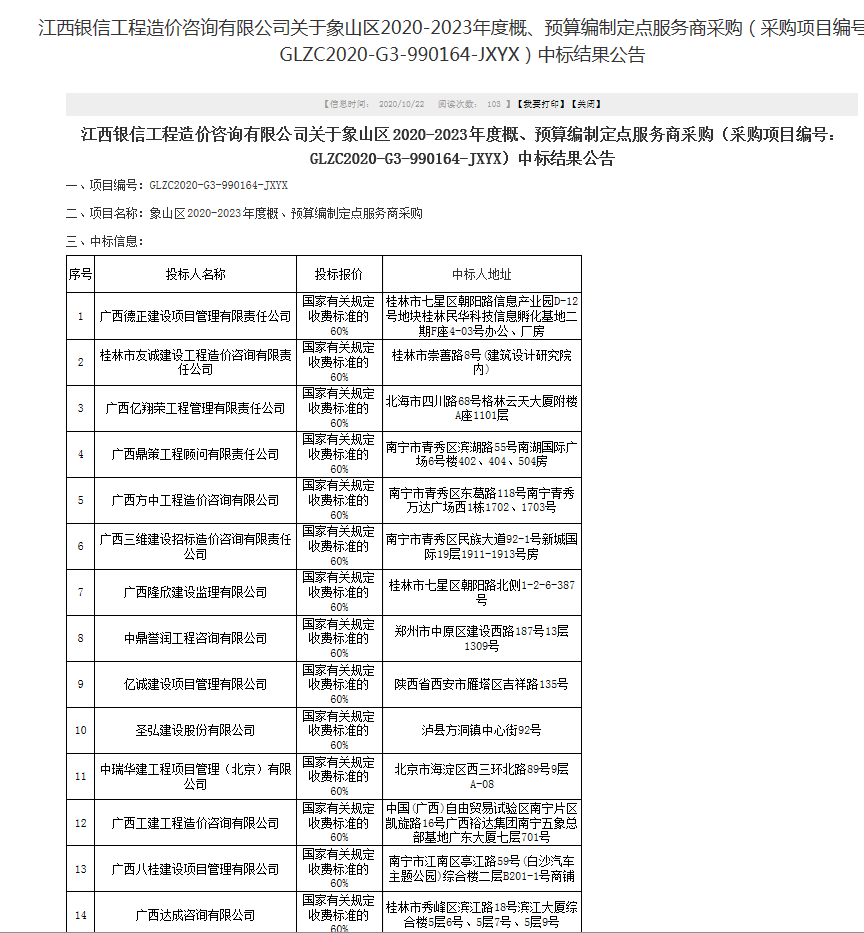 近日,江南注册再接再厉成功中标江西银信工程造价咨询有限公司关于象山区2020-2023年度概、预算编制定点服务商采购项目。