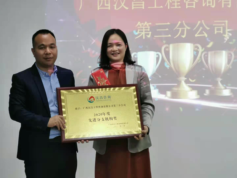 近日,公司董事长伍昌海、总经理唐华林、副总经理何柳军莅临第三分公司,由董事长伍昌海为第三分公司颁发“2020年度先进分支机构奖”牌匾及奖金,第三分公司负责人陈利代表分公司领取这份殊荣!