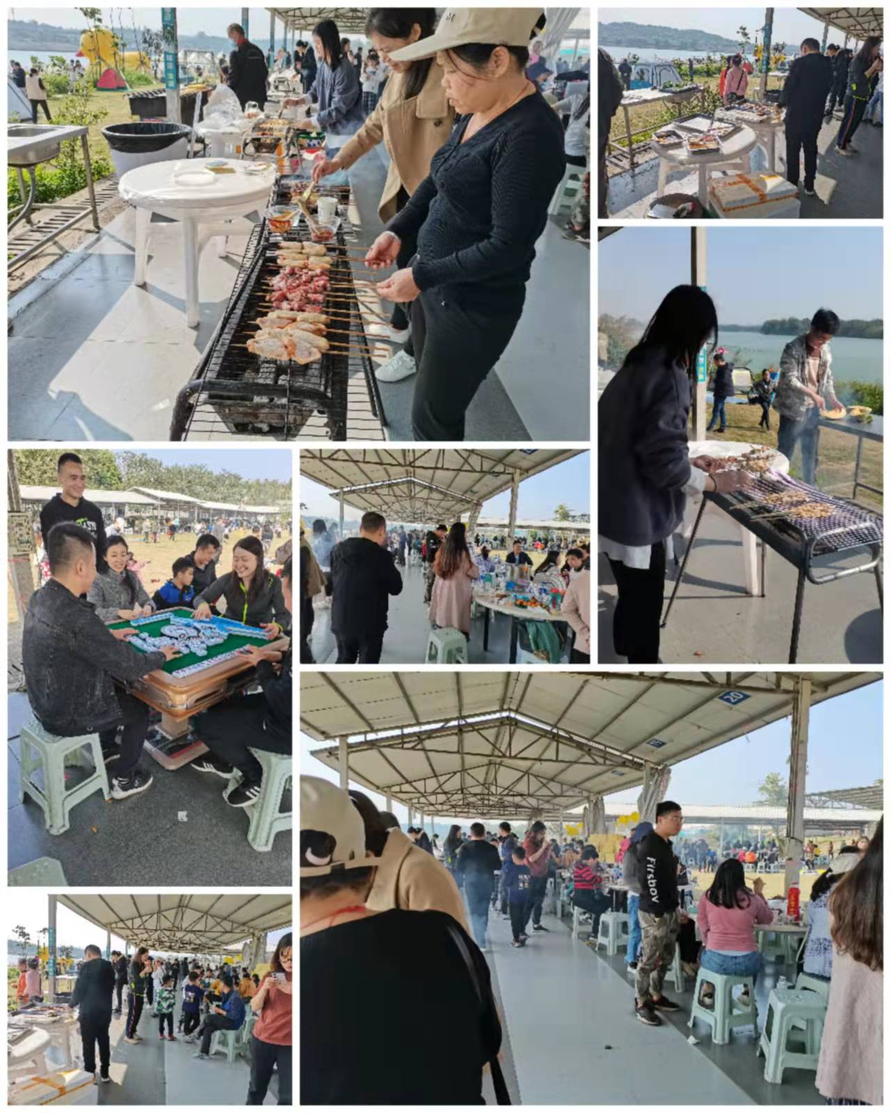 在比赛颁奖结束后,我们在邕江附近的长廊区开始了烧烤活动。大家分工明确,充分发挥团队协作的精神,摆桌子、架炉子、备烧烤食材、涮调料、分配水果饮料,边烤边吃、边吃边聊,同时还不忘相互递送烤好的美食,现场温馨有爱,气氛活跃。