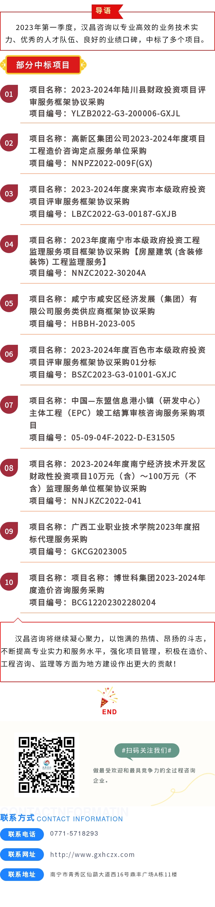 喜讯|汉昌咨询2023年第一季度中标项目
