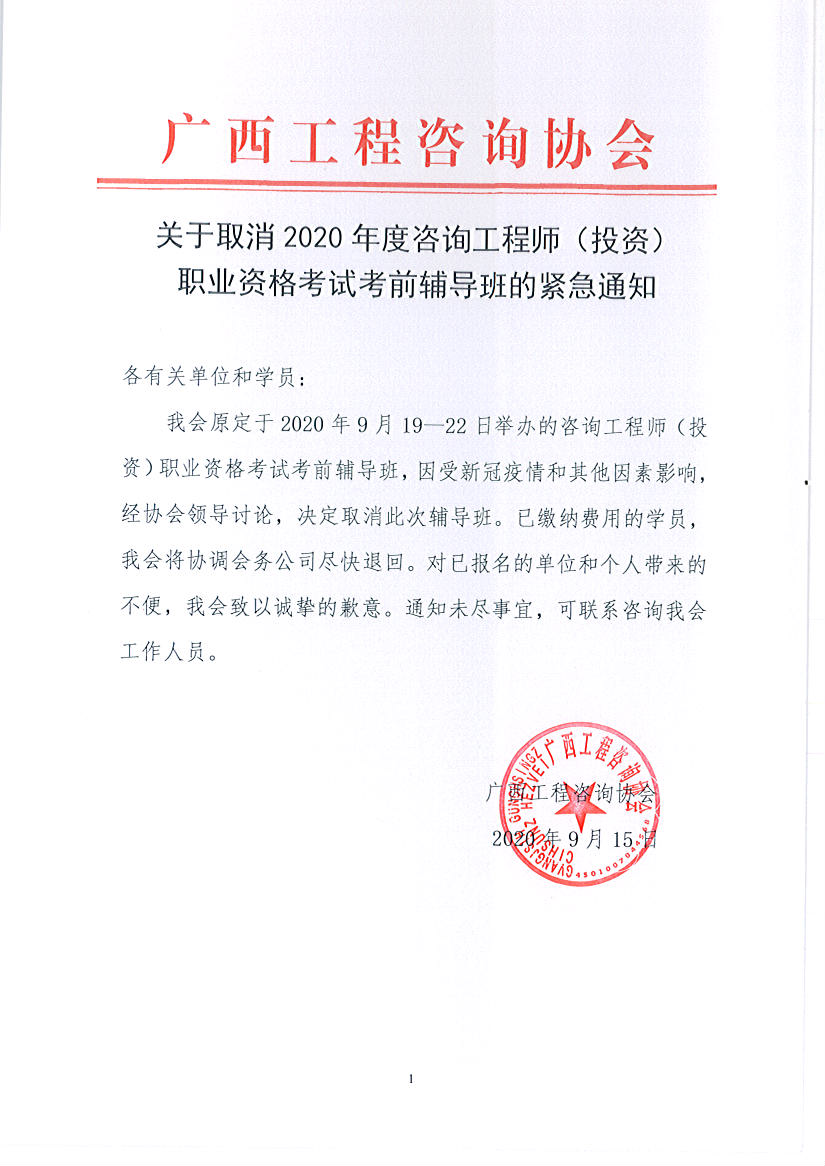 关于取消2020年度咨询工程师(投资)职业资格考试考前辅导班的紧急通知